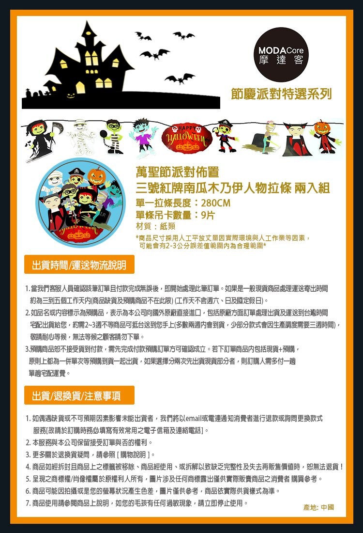 MODACore 摩達客 - 萬聖節派對佈置裝飾-彩旗拉條掛飾組(四入組)-三號紅牌南瓜木乃伊人物彩旗(兩入)+四號...