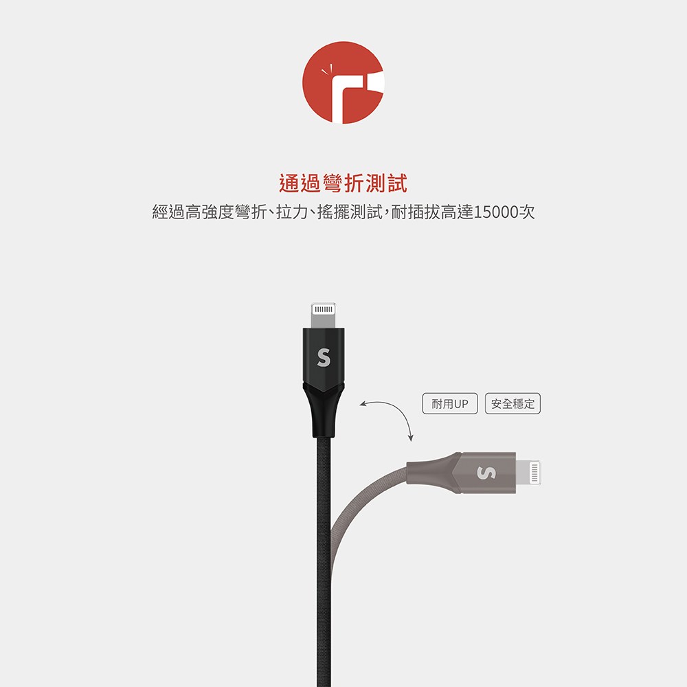 SOODATEK USB A TO LIGHTNING V型鋁殼高彈絲編織線 1.5M