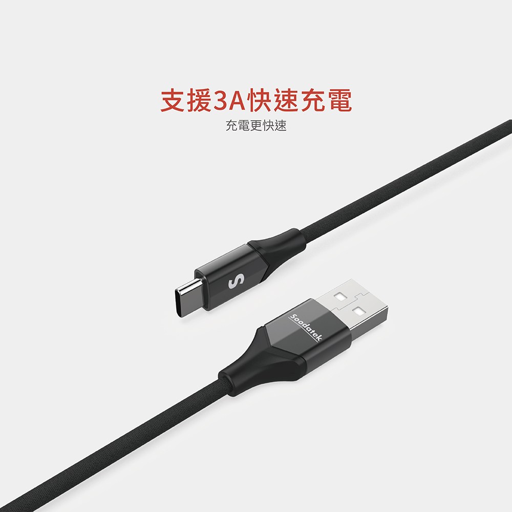 SOODATEK USB2.0 A TO USB C V型鋁殼高彈絲編織線 2M