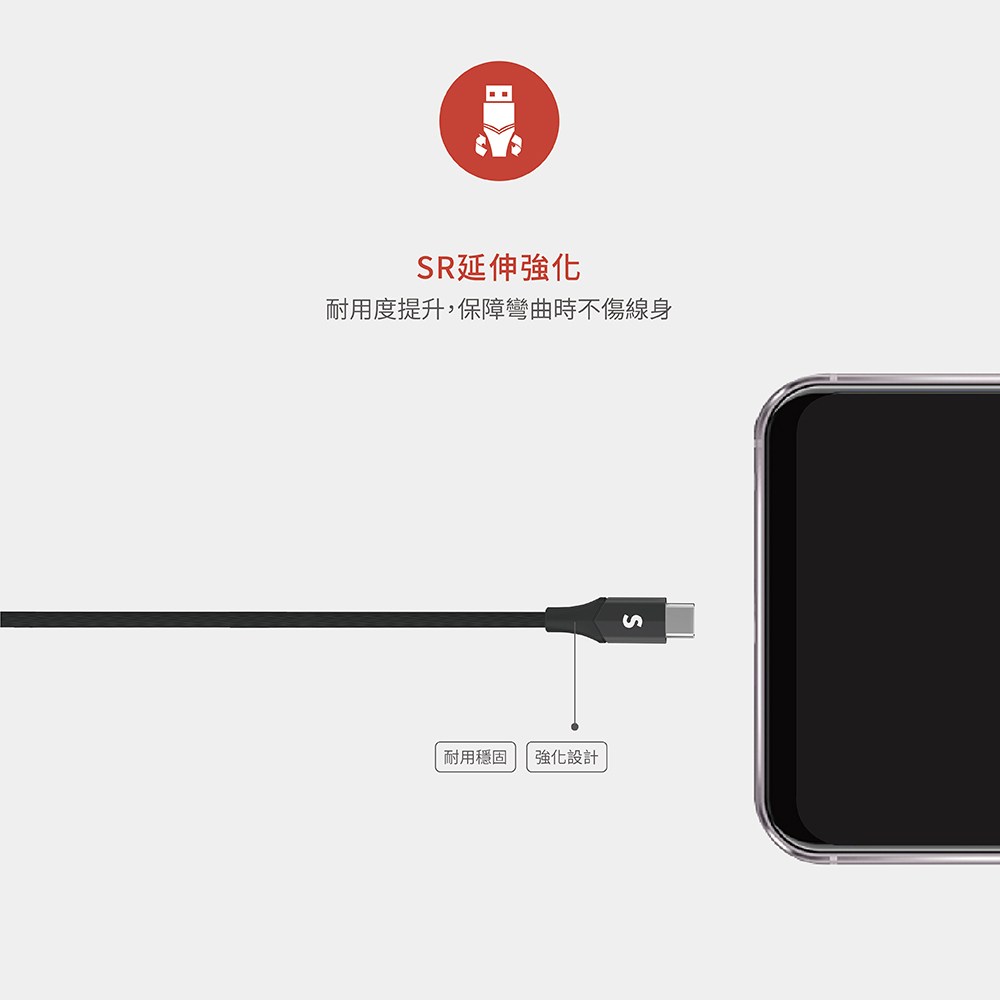 SOODATEK Type C to Type C V型鋁殼高彈絲編織線 1M