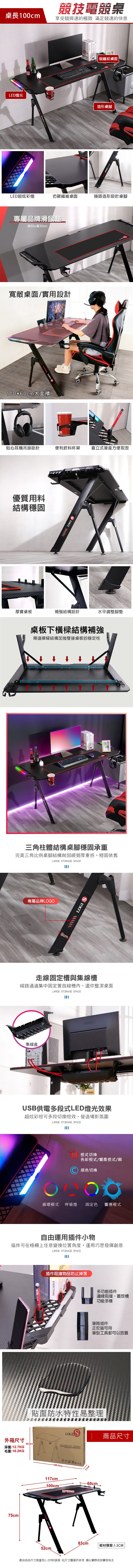 - 超酷炫造型電競桌搭配可調炫麗彩光,營造出的光影科幻感讓人遊戲時更加地融入電玩世界中