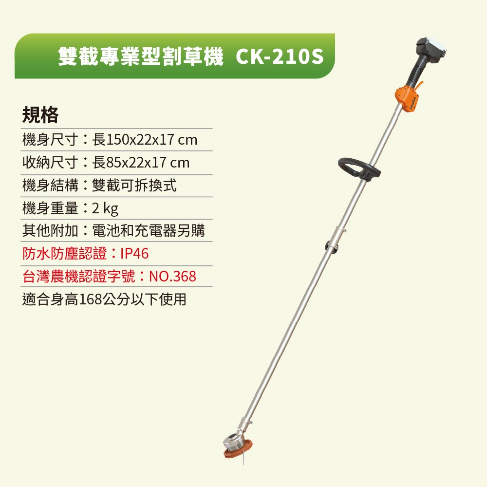 【BLDC 東林】充電雙截式割草機-短版CK-210S(空機-不含充電器與電池)