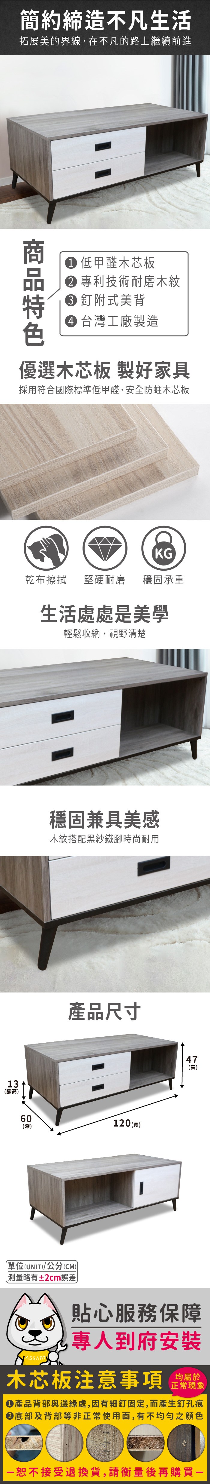JP Kagu台灣製工業風大茶几-寬120cm(矮桌/咖啡桌/收納桌)木紋灰