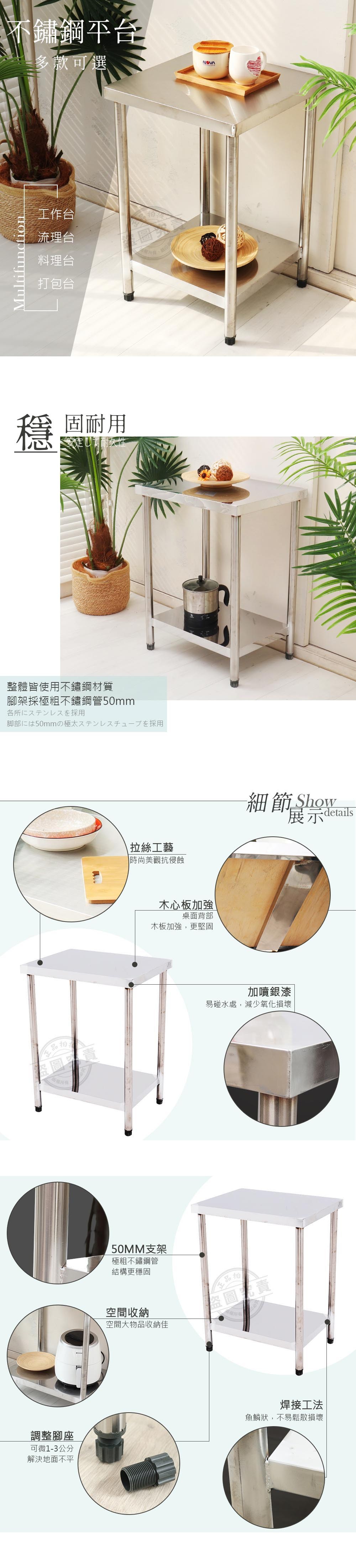 【Abis】豪華升級版二層430不鏽鋼桌/料理桌(51X51CM)-1入