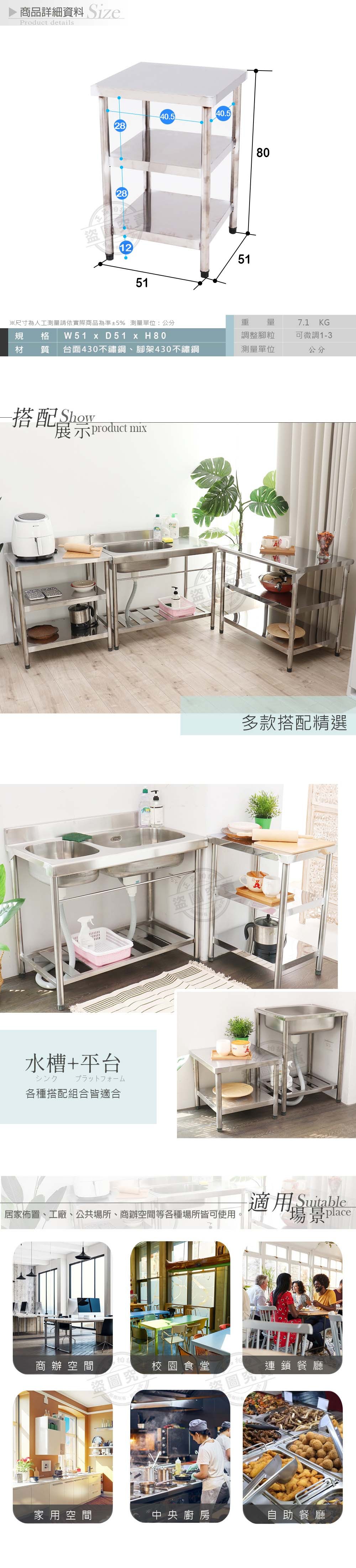 【Abis】豪華升級版三層430不鏽鋼桌/料理桌(51X51CM)-1入