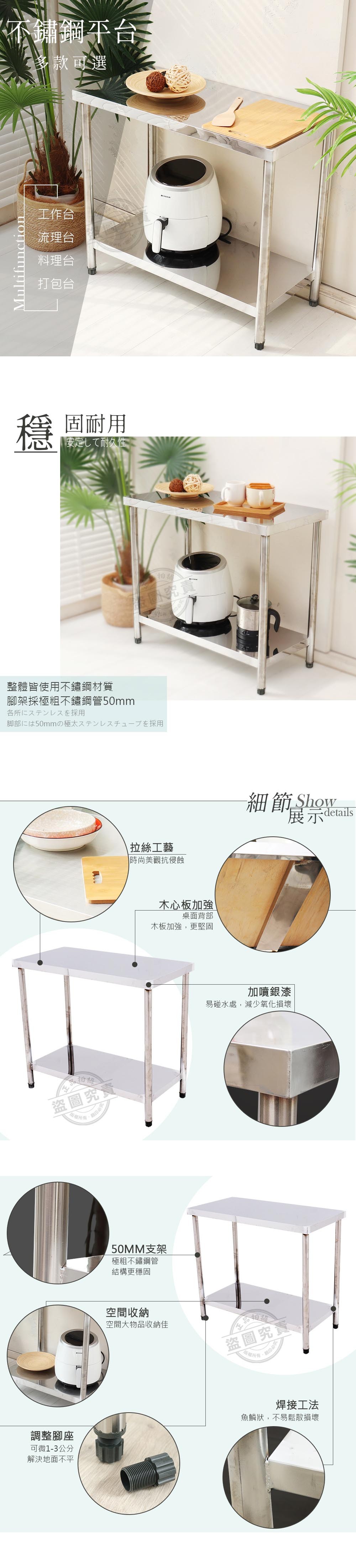 【Abis】豪華升級版二層430不鏽鋼桌/料理桌(51X51CM)-1入