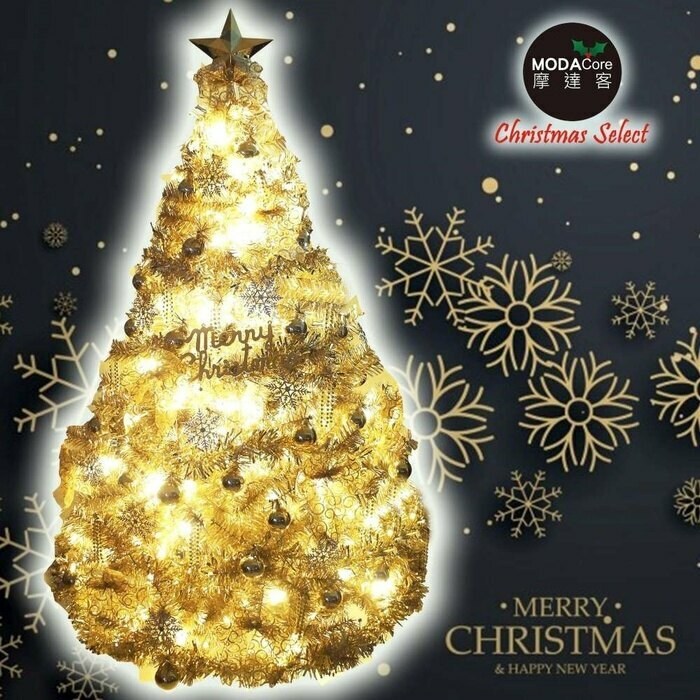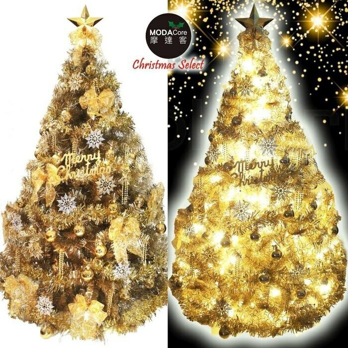 摩達客 台製15尺豪華版氣質霧金聖誕樹+金色系配件組+100燈LED燈15呎/15尺(45