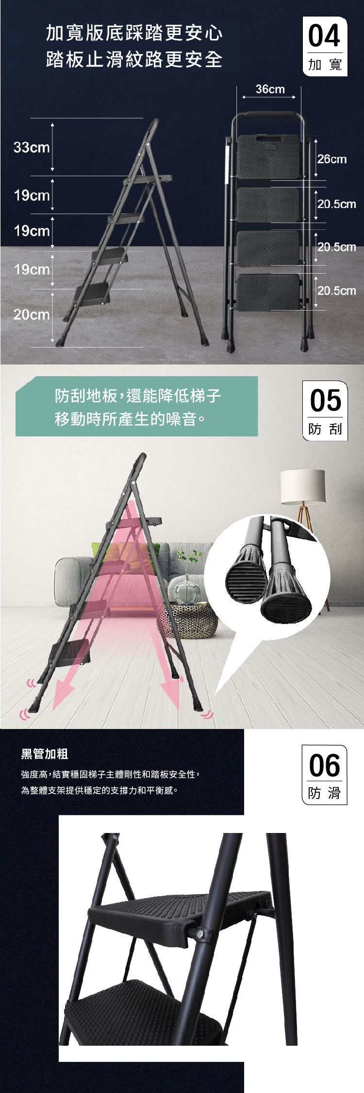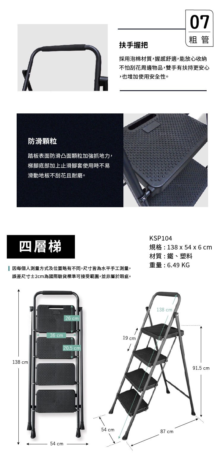家用止滑四階踏板鐵梯-加強穩定版