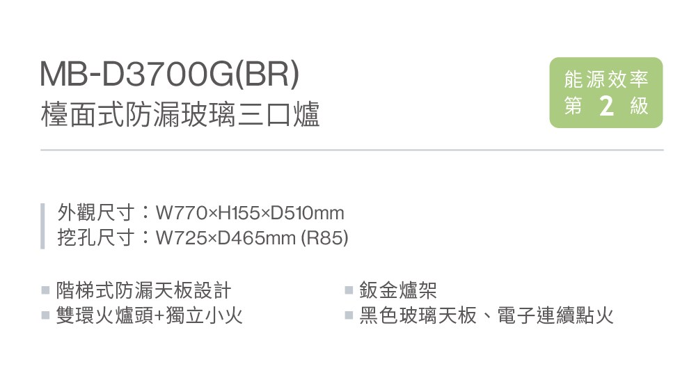 林內RINNAI 檯面式 防漏 三口 玻璃瓦斯爐(黑玻)/左二右一/左一右二/MB-D3700G(B)/天然 合格瓦斯承裝業 全省免費安裝(離島及偏遠鄉鎮除外)
