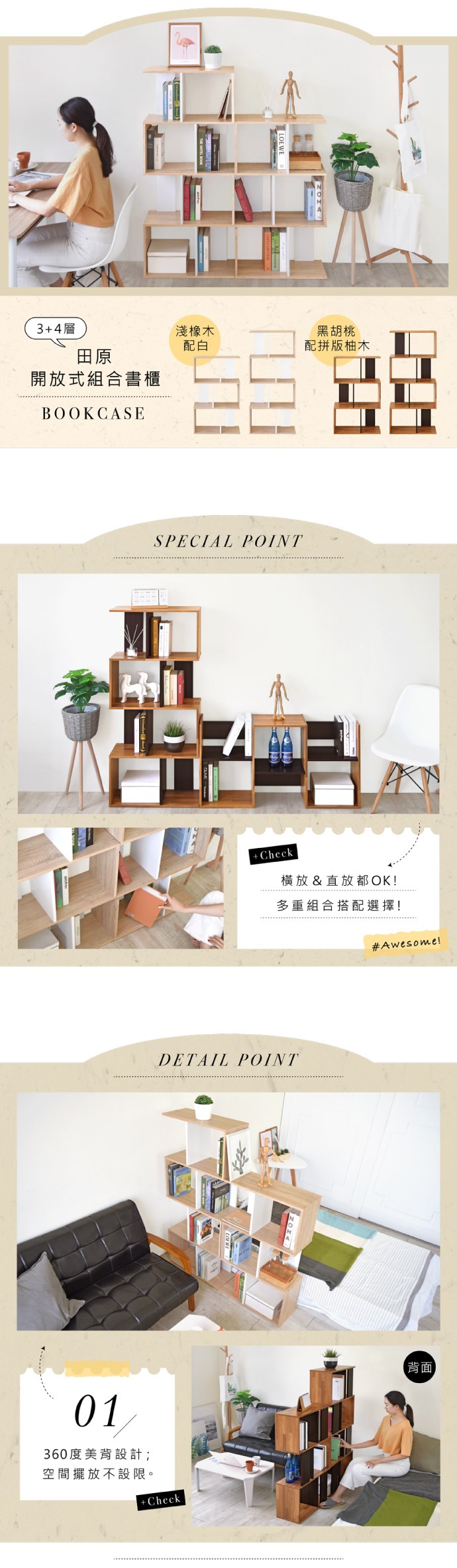 《HOPMA》田原三層開放式組合書櫃 台灣製造 屏風 收納櫃 三層櫃 儲藏櫃 書櫃 置物櫃 玄關櫃 門櫃 書架-黑胡桃配拼版柚木