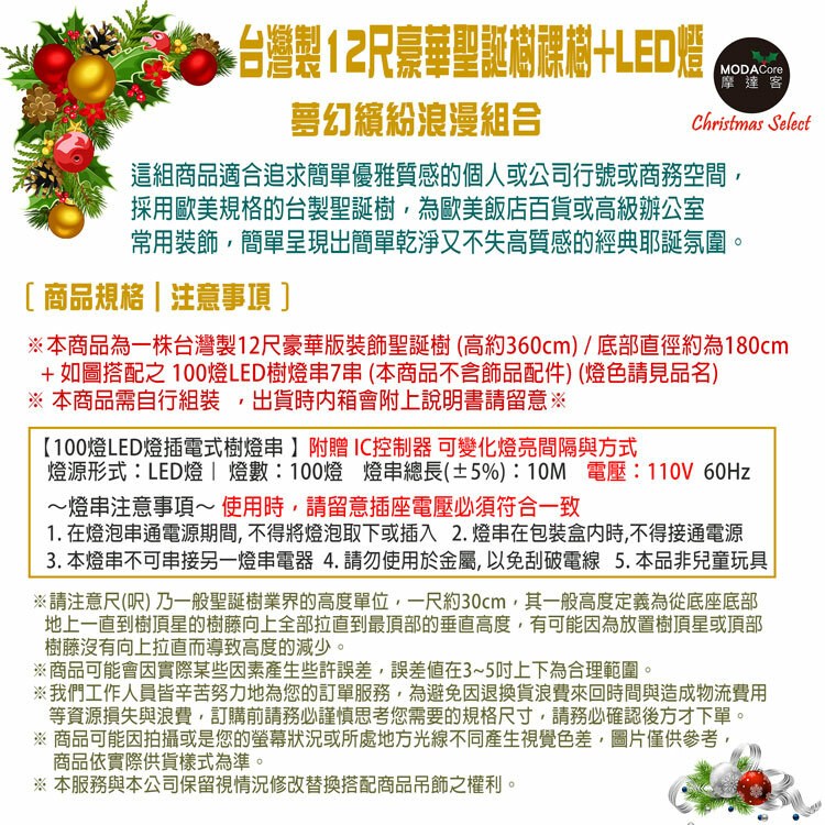 摩達客 台灣製12尺(360cm)特級綠色松針葉聖誕樹 裸樹 (不含飾品不含燈) 本島免運費