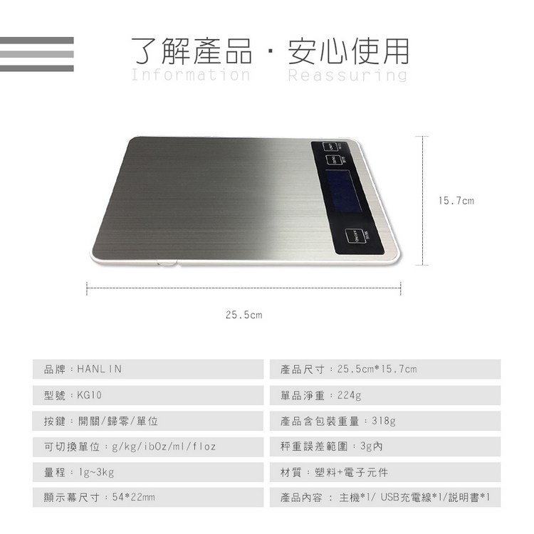 HANLIN-KG10~可換單位3kg廚房電子秤