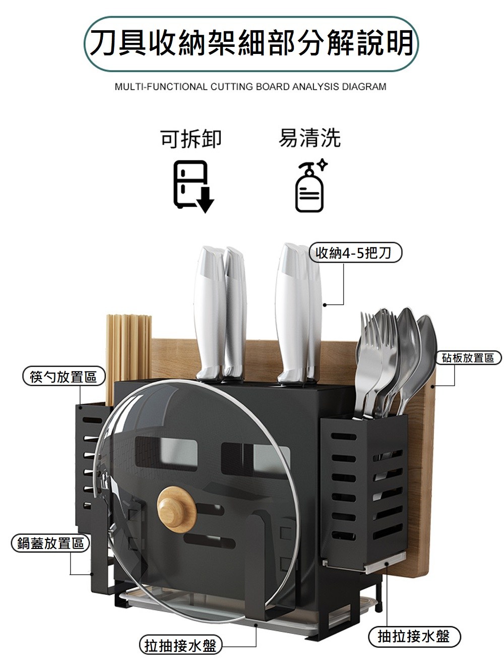 多功能刀具砧板鍋蓋收納架
