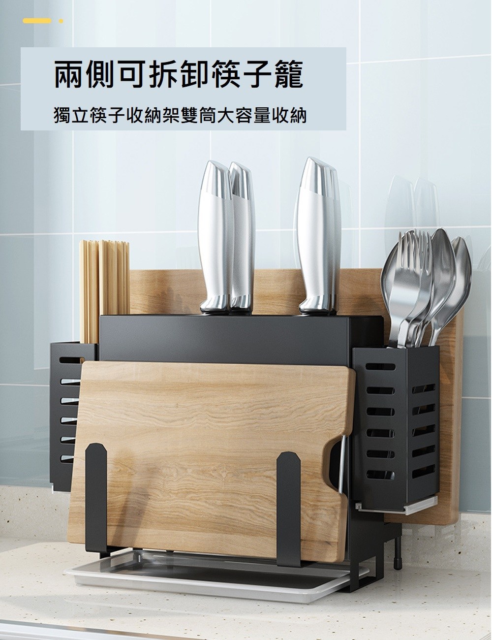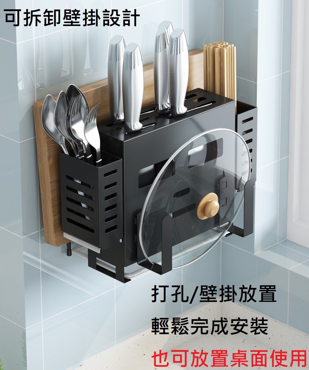 【免打孔壁掛】廚房置物架 刀架 砧板架 鍋蓋架 筷子籠 一體收納 節省檯面空間 通風防潮 廚具收納神器
