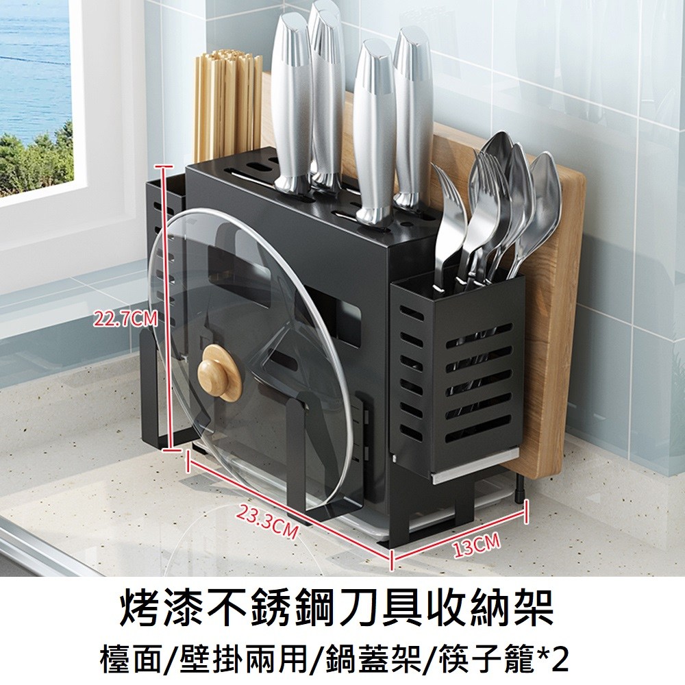 【含稅/免運】 不銹鋼多功能壁掛式菜廚房置物架臺面刀具鍋蓋砧板筷子籠一體刀架