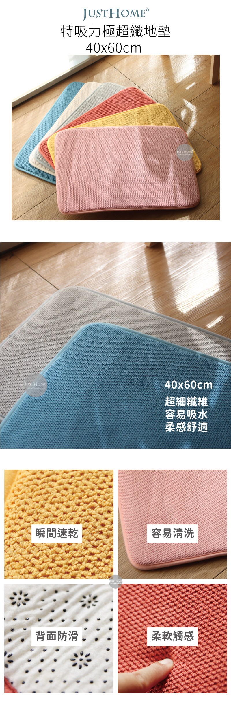 寢室安居 吸水止滑軟式珪藻土地墊 花花 60 x 40cm 4個