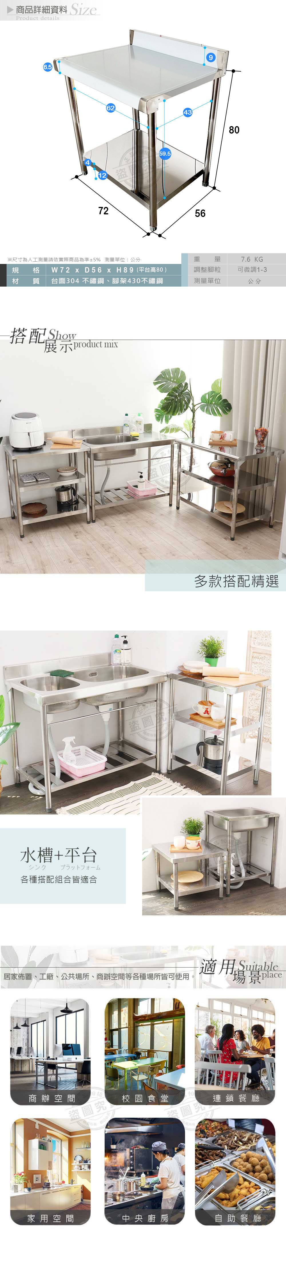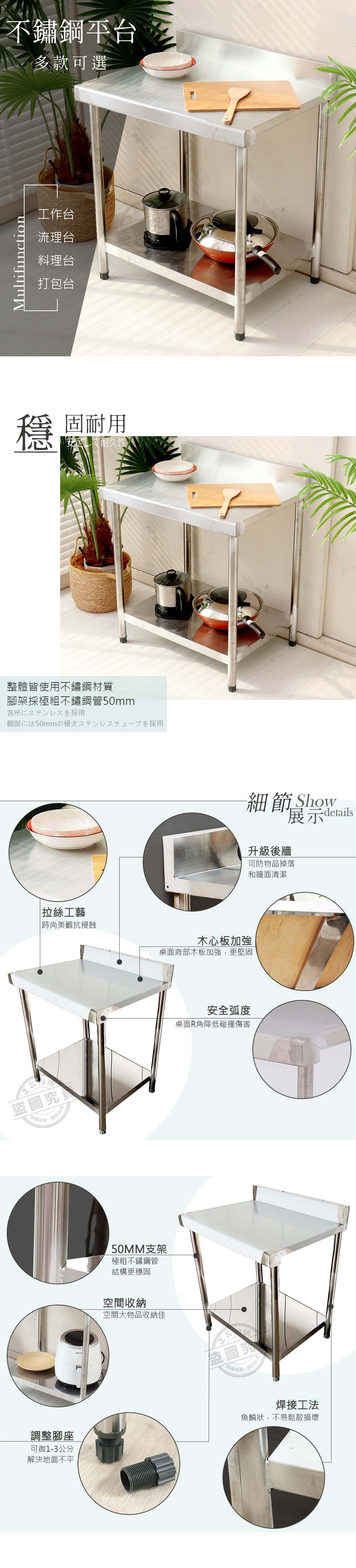 【Abis】升級版加牆款二層304不鏽鋼桌/料理桌(72X56CM)-1入