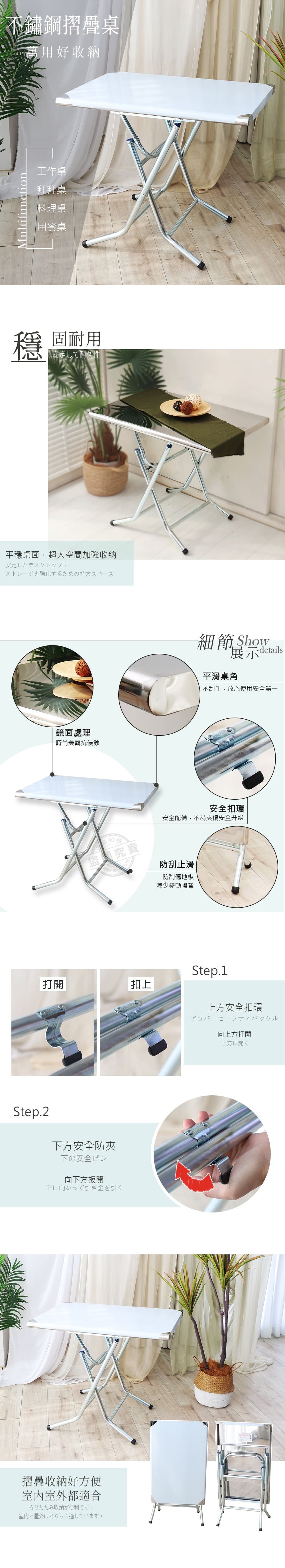 【Abis】安全升級版摺疊桌304不鏽鋼桌/露營桌/拜拜桌(2尺X3尺)-1入