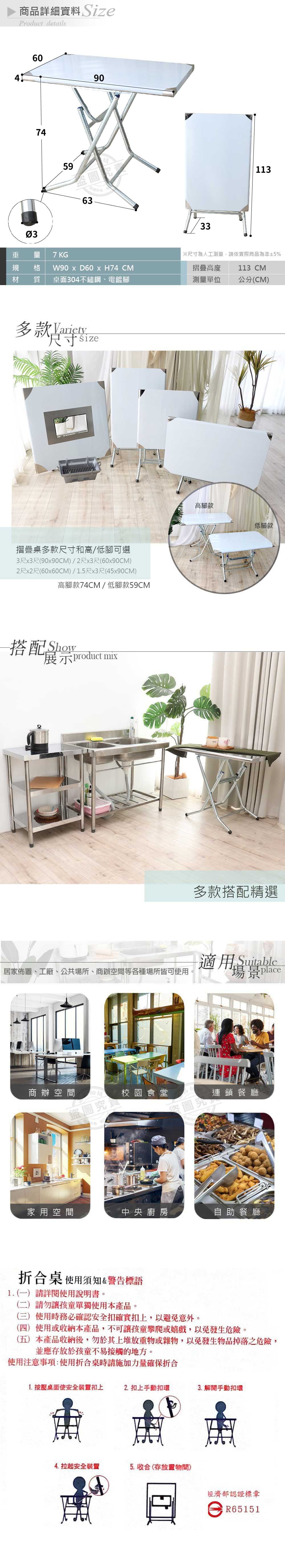 【Abis】客製商品-第二代安全升級加厚版折疊桌430不鏽鋼桌/露營桌/料理桌/休閒桌/拜拜桌(2尺X3尺-高腳款74CM)