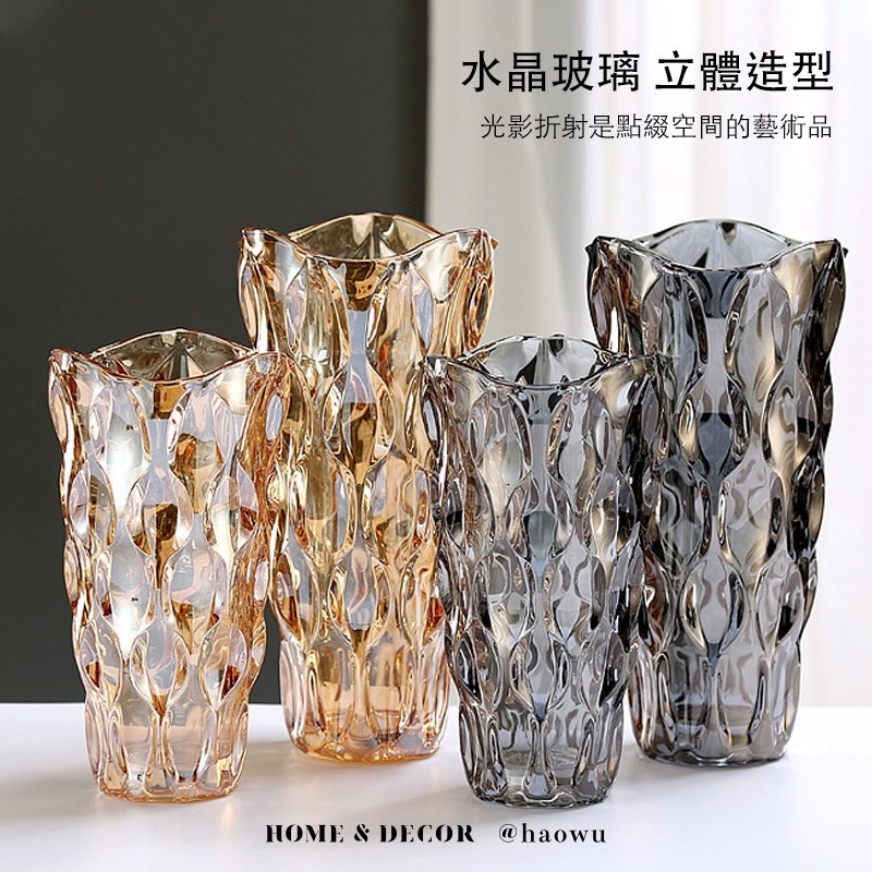 【好物良品】矮款_美式輕奢波西米亞水晶玻璃花瓶 花藝花器插花裝飾品擺飾矮款 (珠光色)