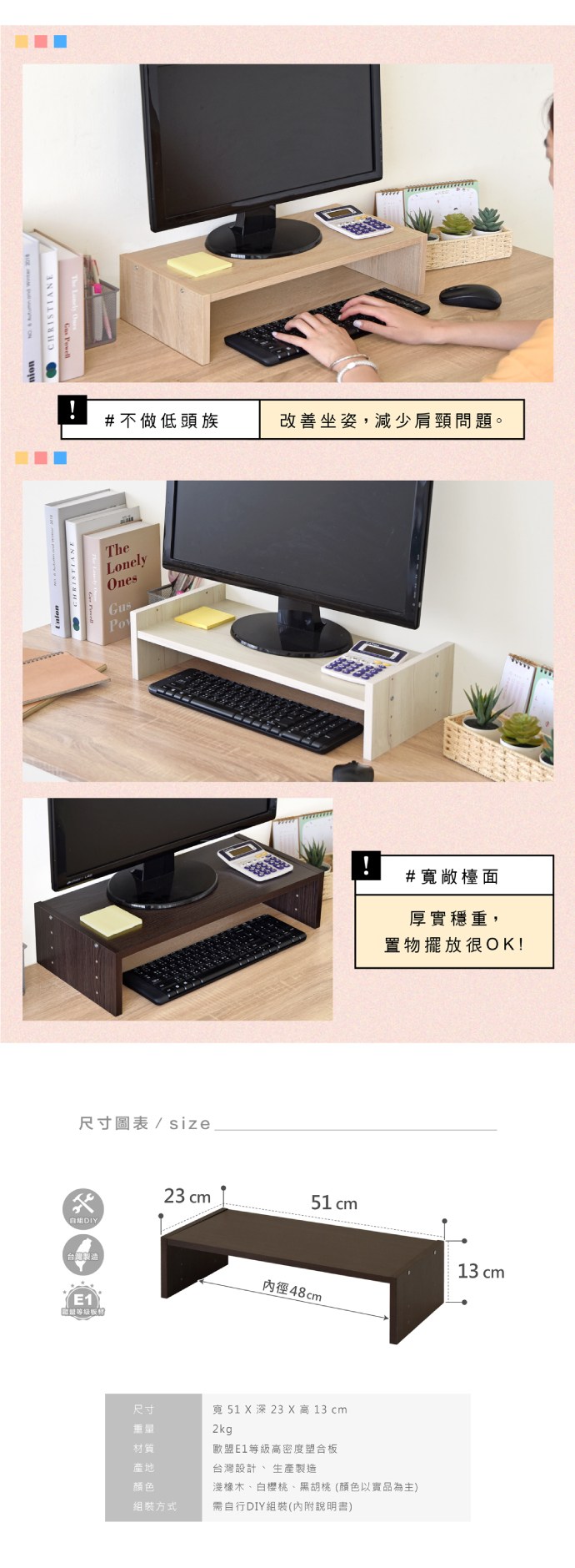 點我下載《HOPMA》可調式桌上螢幕架 台灣製造 主機架 收納架 螢幕增高架 展示架 鍵盤收納架 桌上架-黑胡桃