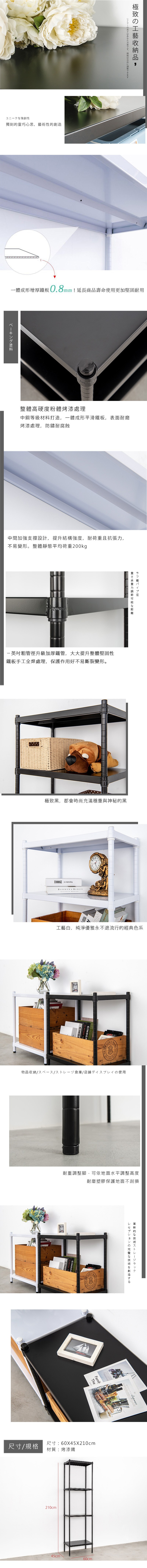 dayneeds 沖孔 90x45x180cm四層收納架(烤漆黑) 層架/置物架/儲藏架