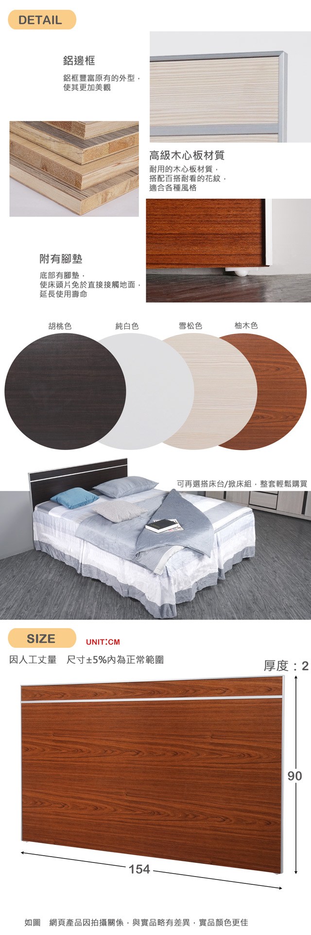 【多瓦娜】派克5尺床頭片(附插座)-三色白梧桐