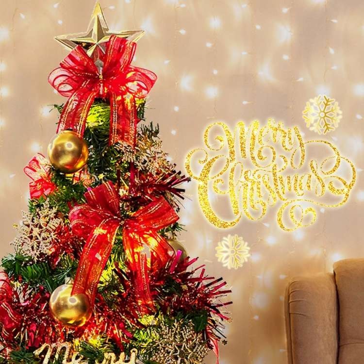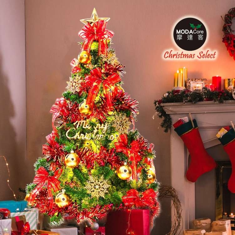 特仕幸福型裝飾聖誕樹+綺紅金雪系配件 50燈LED燈暖白光*1 附控制器 綠色 120cm