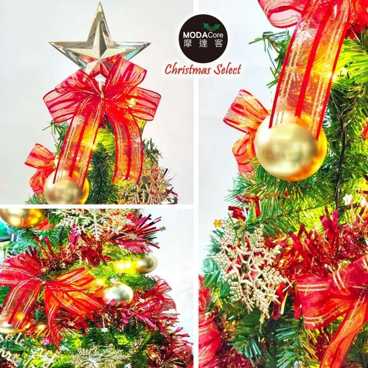 耶誕特級聖誕樹+紅金色系配件 不含燈 綠色 + 紅色 + 金色 90cm