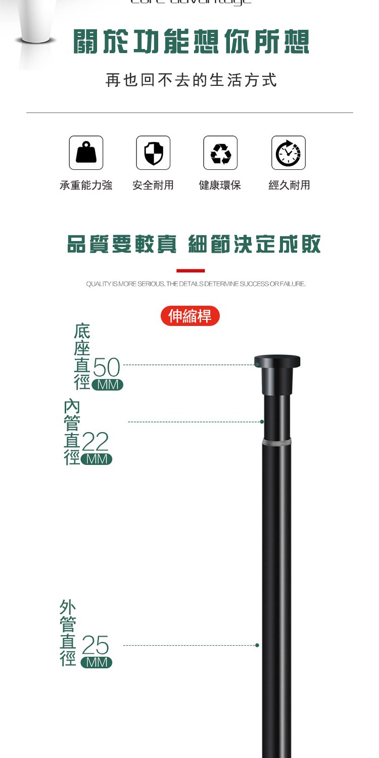TRENY 大福 鋁合金窗簾桿 附平頭 直徑28mm 有塑膠條 120cm 白色