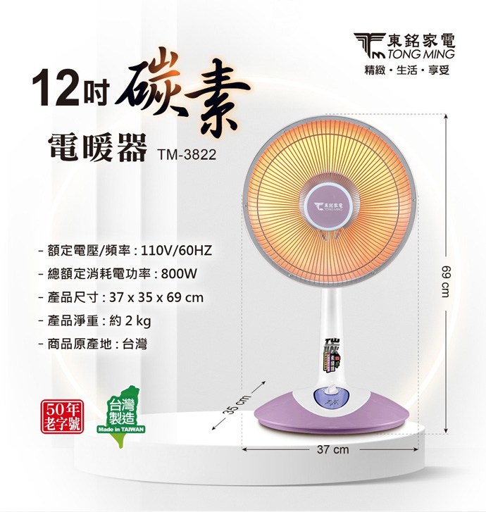 東銘 12吋碳素電暖器 TM-3822