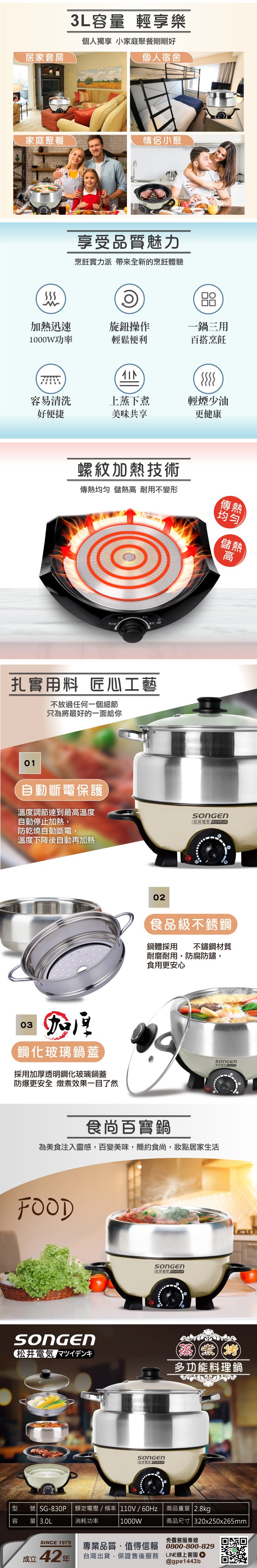 【SONGEN松井】智慧升降湯料分離料理鍋/電火鍋SG-847C(P)