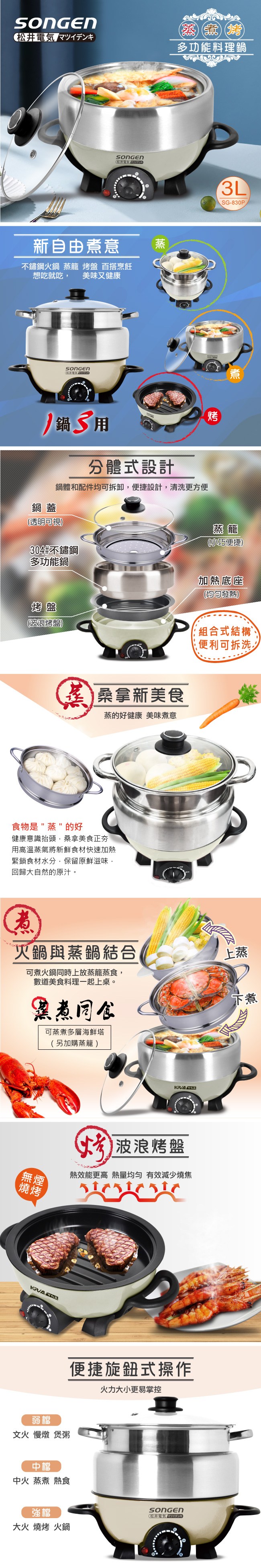 【日本SONGEN】松井3L不鏽鋼蒸煮烤多功能料理電火鍋
