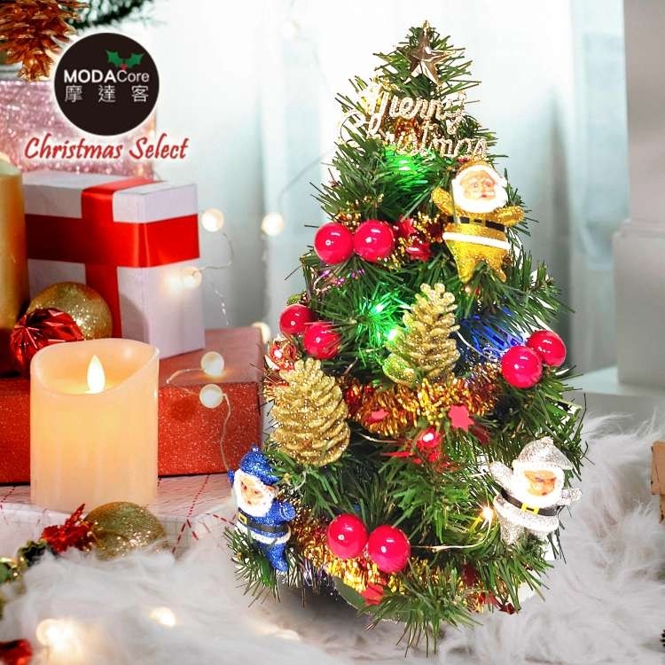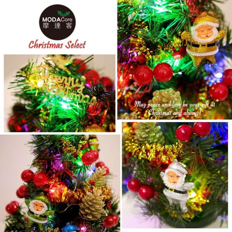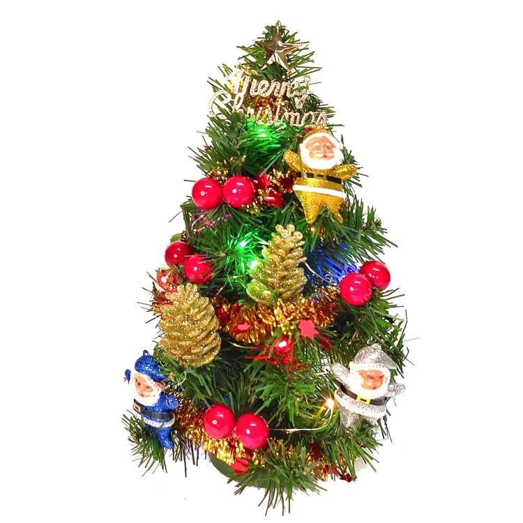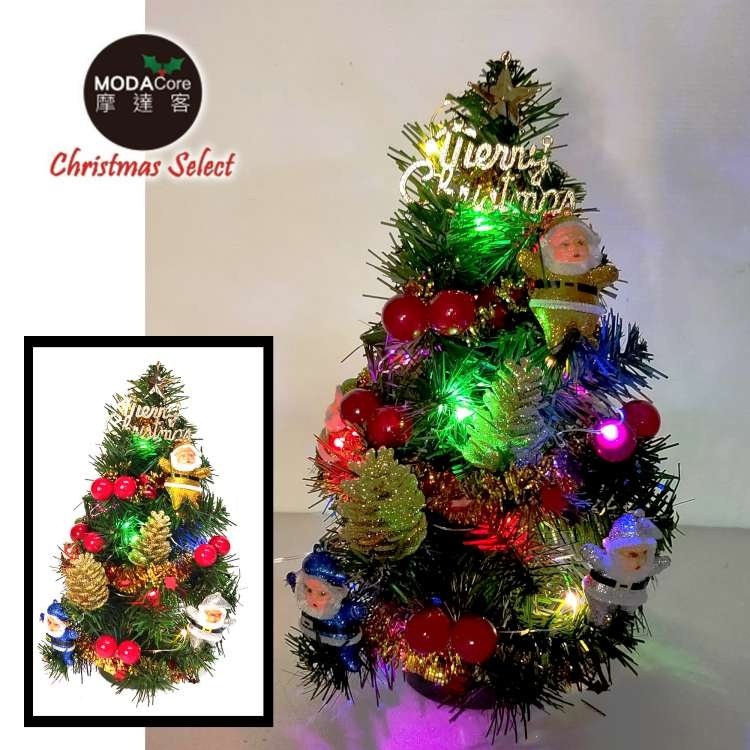 摩達客 1尺裝飾聖誕樹(聖誕老人紅果系)+LED20燈銅線燈(彩光)(USB電池兩用充電)