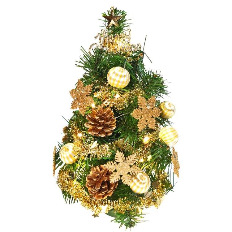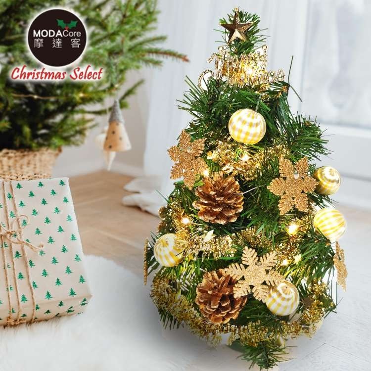 摩達客 精緻綠色聖誕樹套組 不含燈 聖誕花糖果金系 1尺(30cm)
