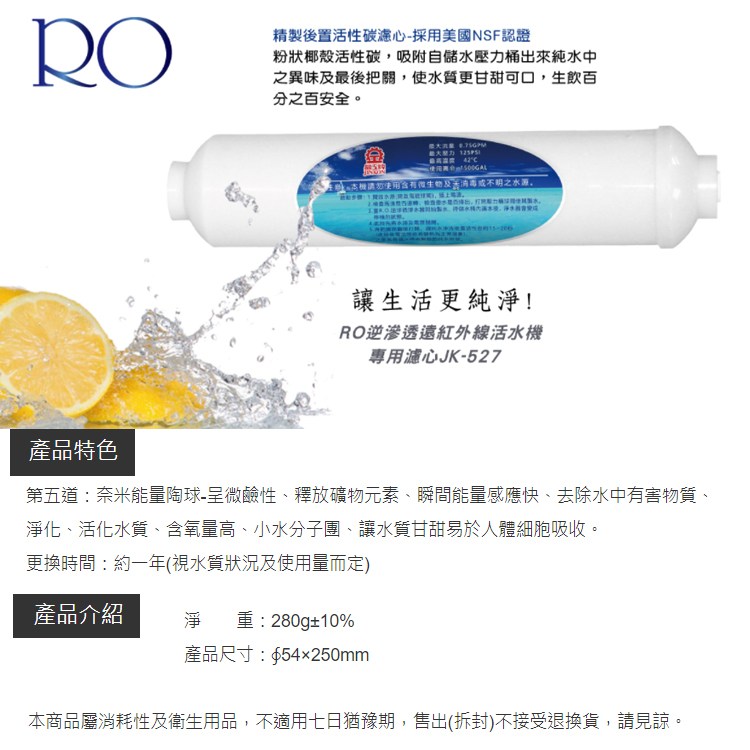 晶工RO逆滲透濾心 JK-526+JK-527+JK-531 (適用晶工PW3620/Jk-237淨水器)