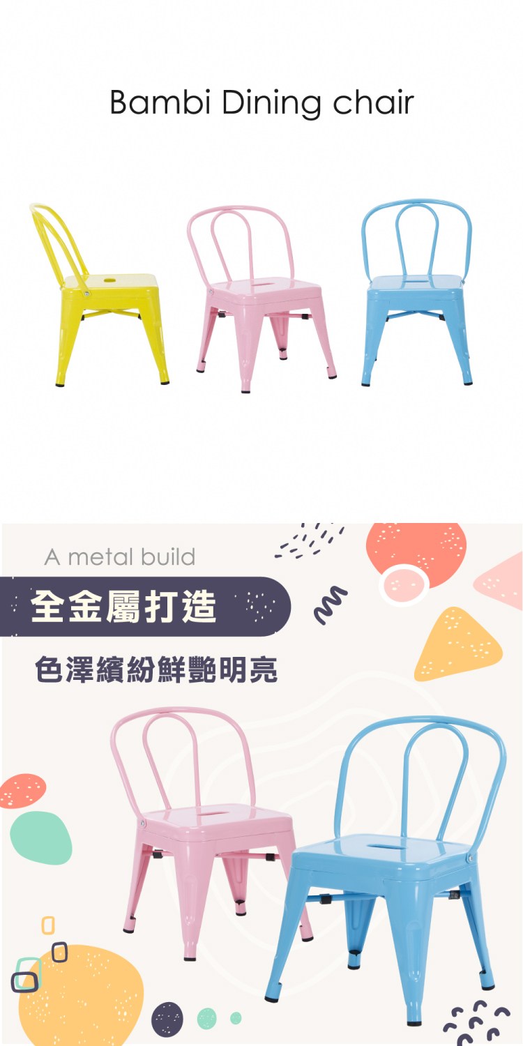 [E-home]Bambi班比全金屬多彩兒童餐椅,經典復古工業感打造迷你龐克風,全金屬打造,色澤繽紛鮮艷明亮。