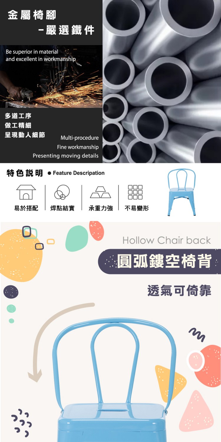 * 圓弧鏤空椅背造型,透氣可倚靠