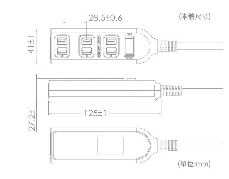 .本體尺寸:長 125mm x 寬 41mm x 高 27.2 mm