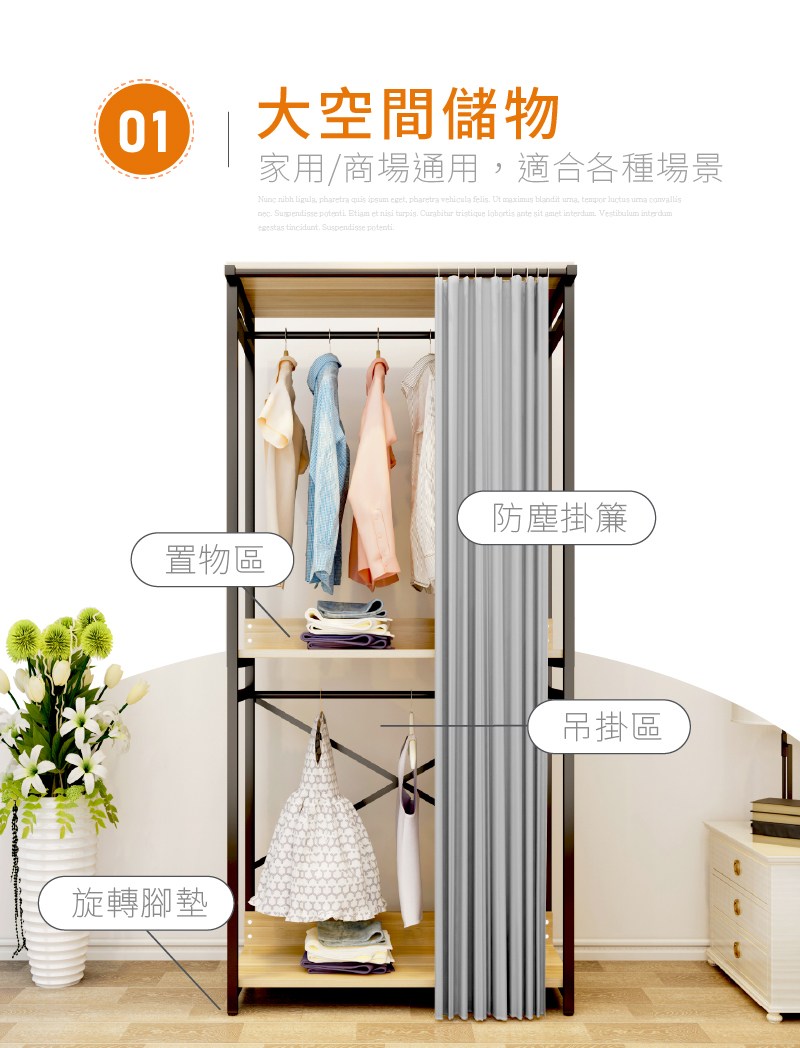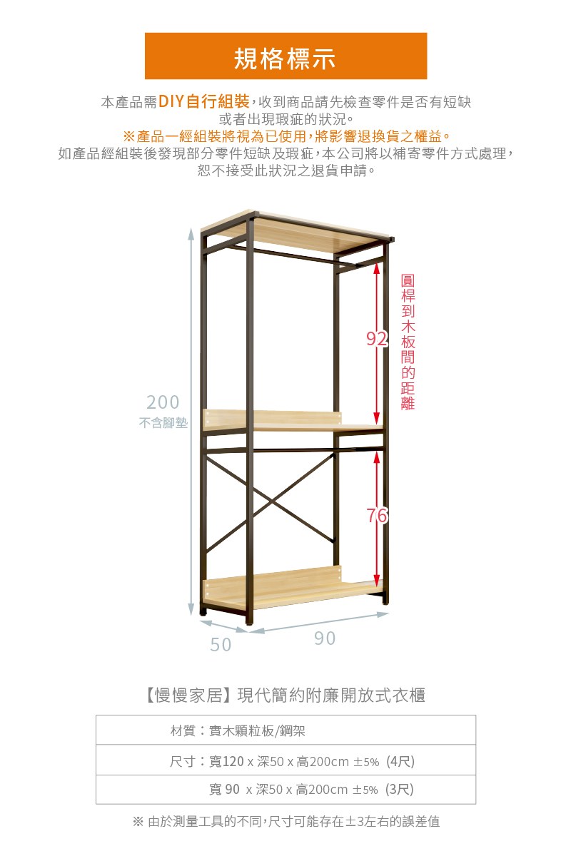 【慢慢家居】專人組裝-現代簡約附廉開放式衣櫃-3尺雙吊-W90xD50xH2003尺開放式衣櫃