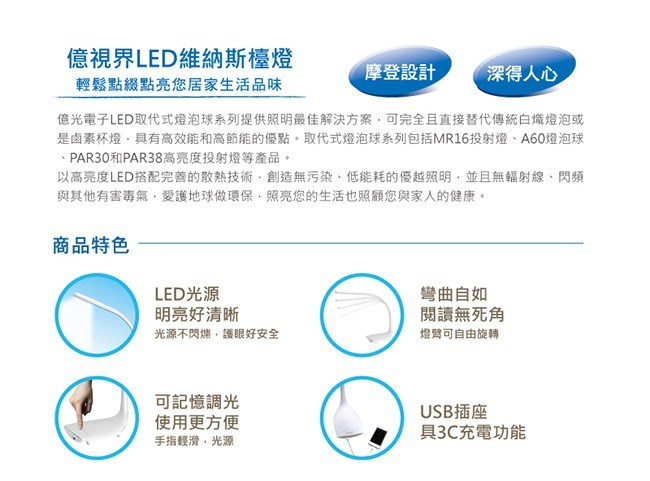 此款有銀河白、銀河黑兩種顏色可供選擇,歡迎搜尋關鍵字【億光 LED 維納斯檯燈】謝謝。