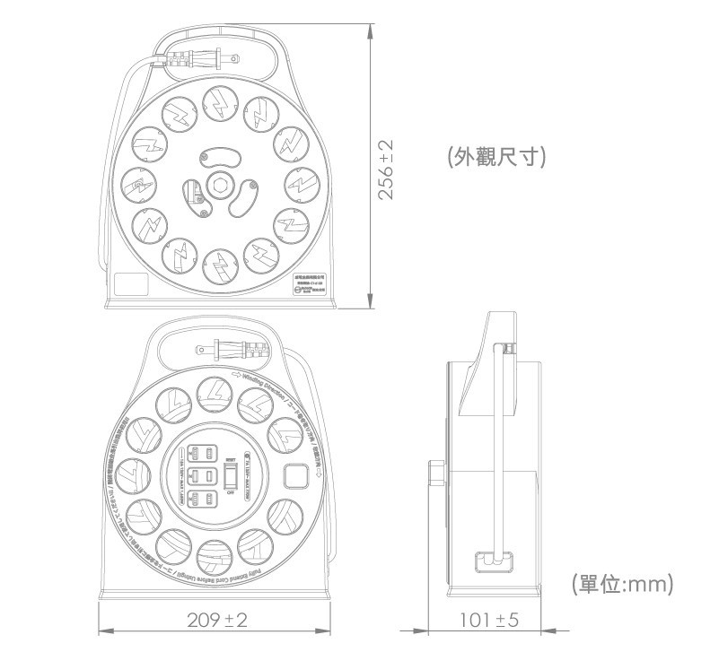 .額定電流:15A(完全伸出)/7A(完全盤捲)