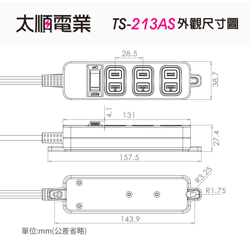 .本體尺寸:長157.5mm x 寬38.7mm x 高31.5mm