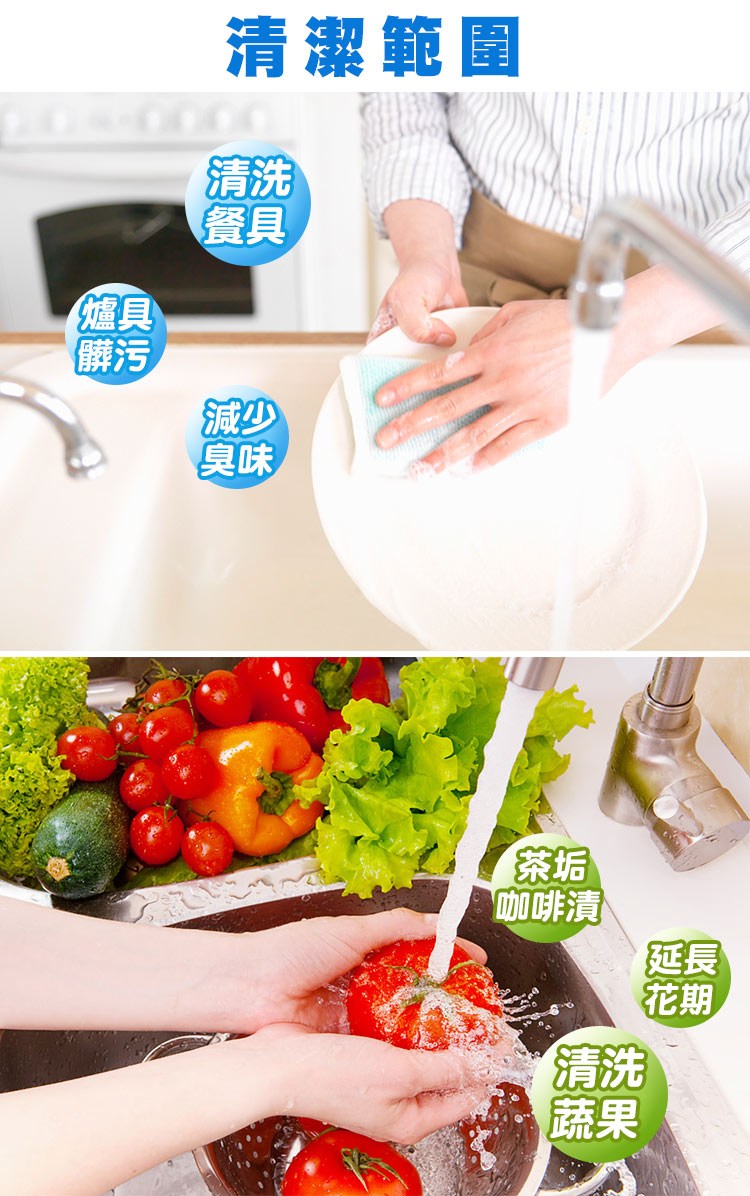 ◆礦物質元素,對環境及人體無害,具除臭、清潔多用途!