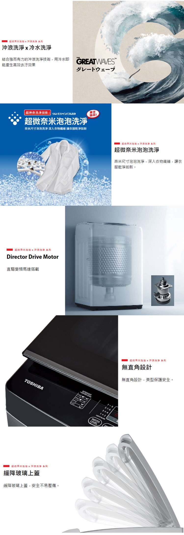 超微奈米泡泡帶出洗滌劑,洗滌力量,讓髒汙脫落! 結合強而有力的沖浪洗淨技術+冷水洗淨 能產生高效去汙效果,洗淨及節能的高標準!