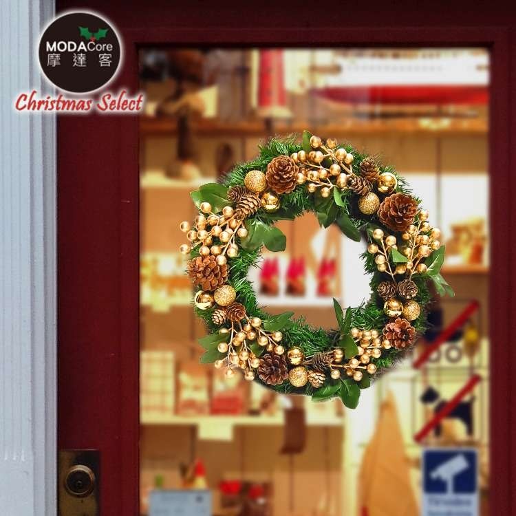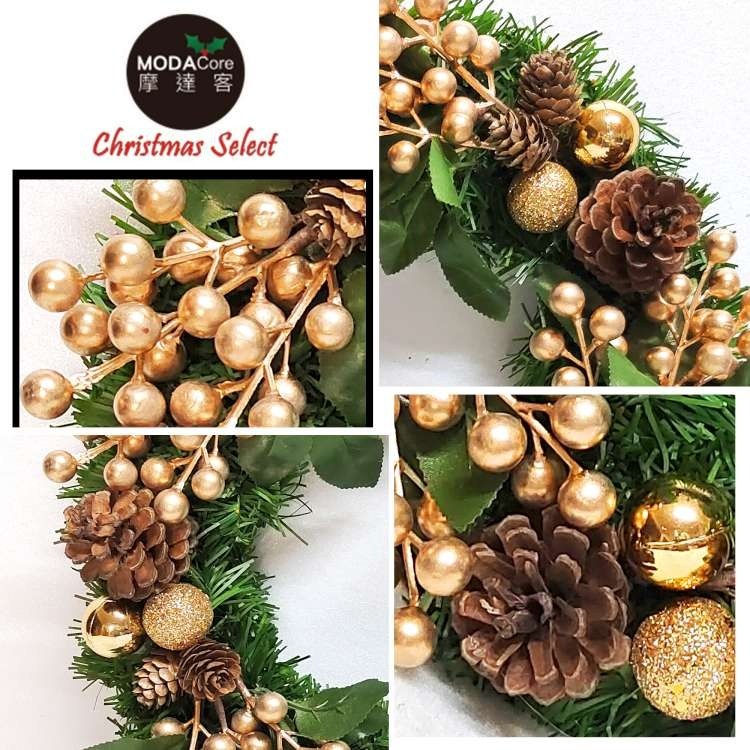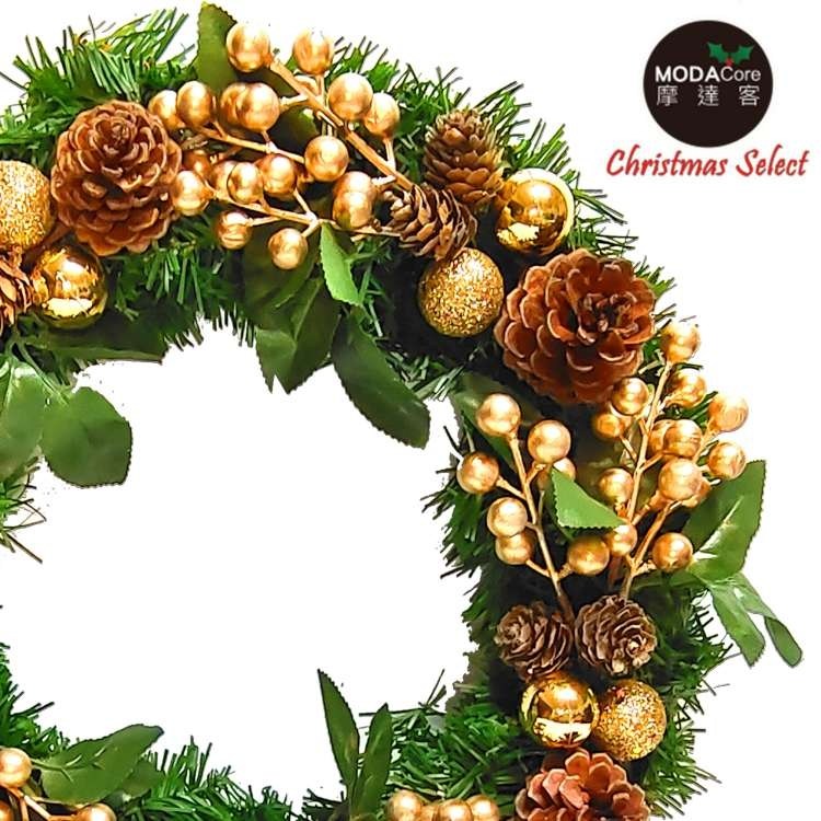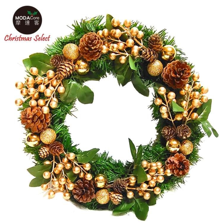 摩達客耶誕-台製歐風典雅20吋大地盛宴金球果松果聖誕花圈_福臨圈