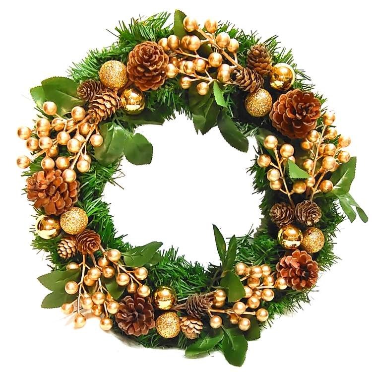 摩達客耶誕-台製歐風典雅14吋大地盛宴金球果松果聖誕花圈_福臨圈