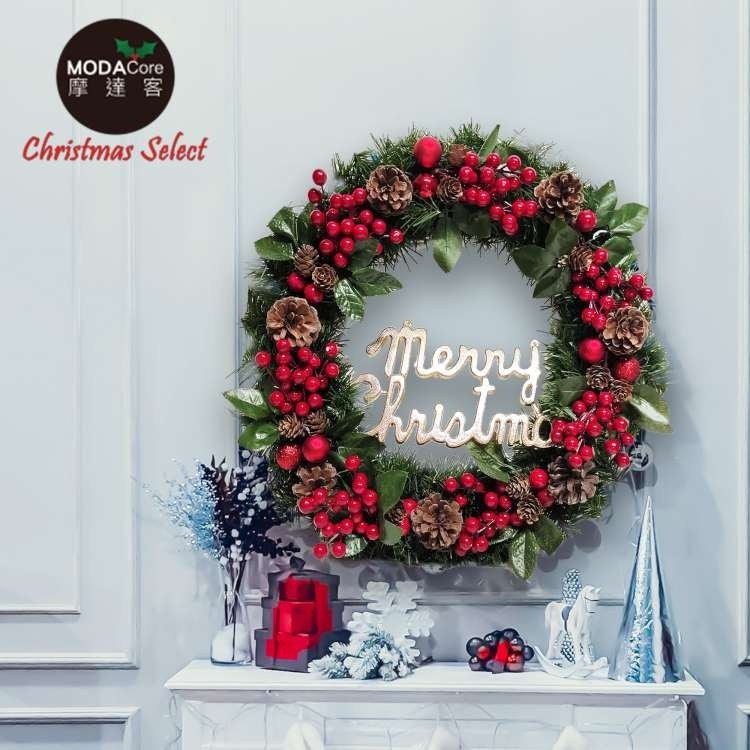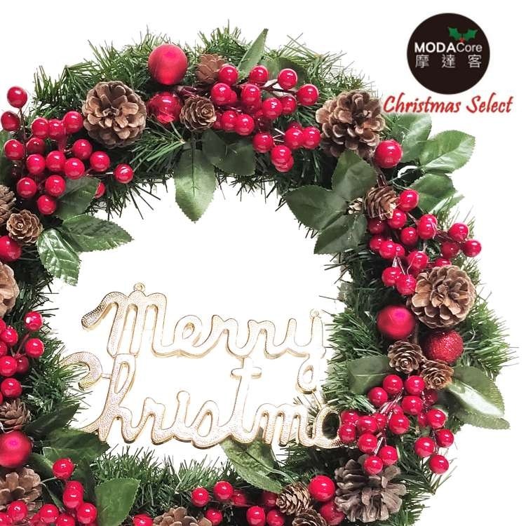 MODACore 摩達客 - 耶誕-20吋豪華高級聖誕花圈(紅金色系)台灣手工組裝出貨