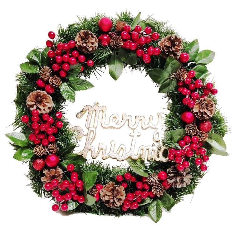 圣誕花環裝飾壁掛松果飾品冬青果仿真花塑料葉子仿真樹葉綠葉門飾