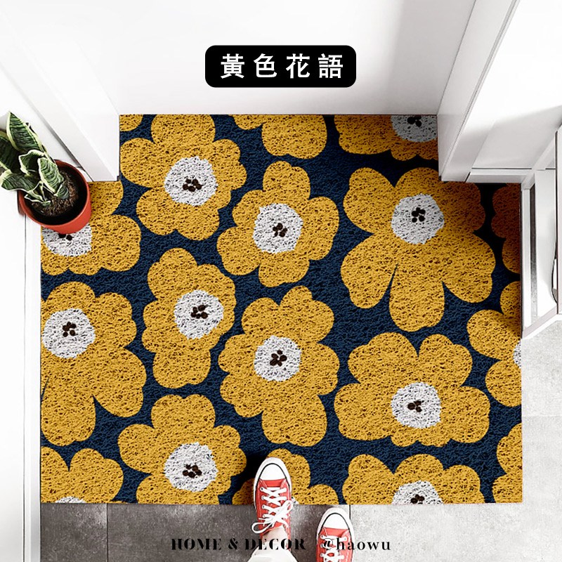 【好物良品】80x120cm_獨家設計大尺寸可剪裁玄關絲圈刮泥地墊-黃色花語